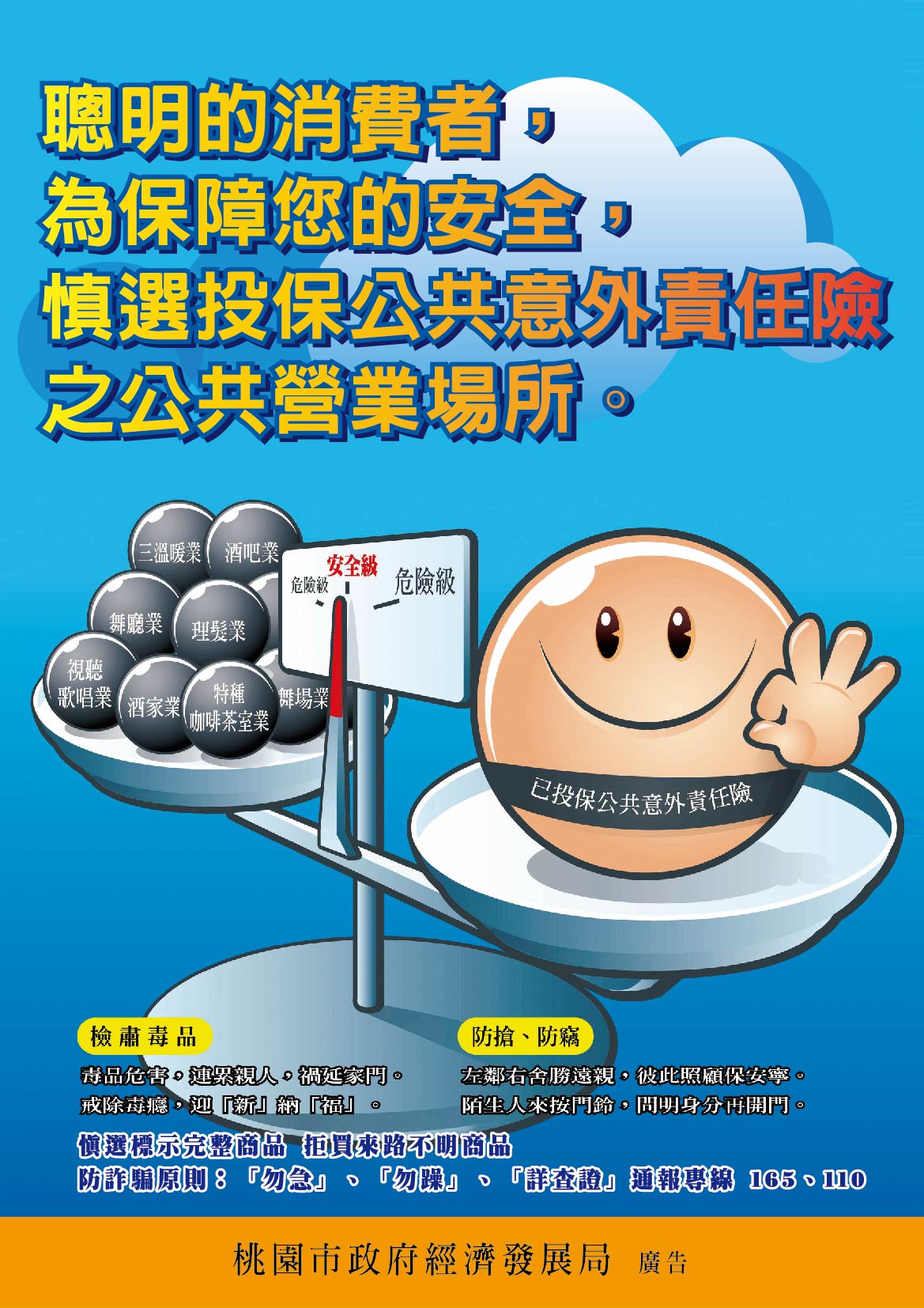 1 、聰明的消費者,為保障您的安全,慎選投保公共意外責任險之公共營業場所。